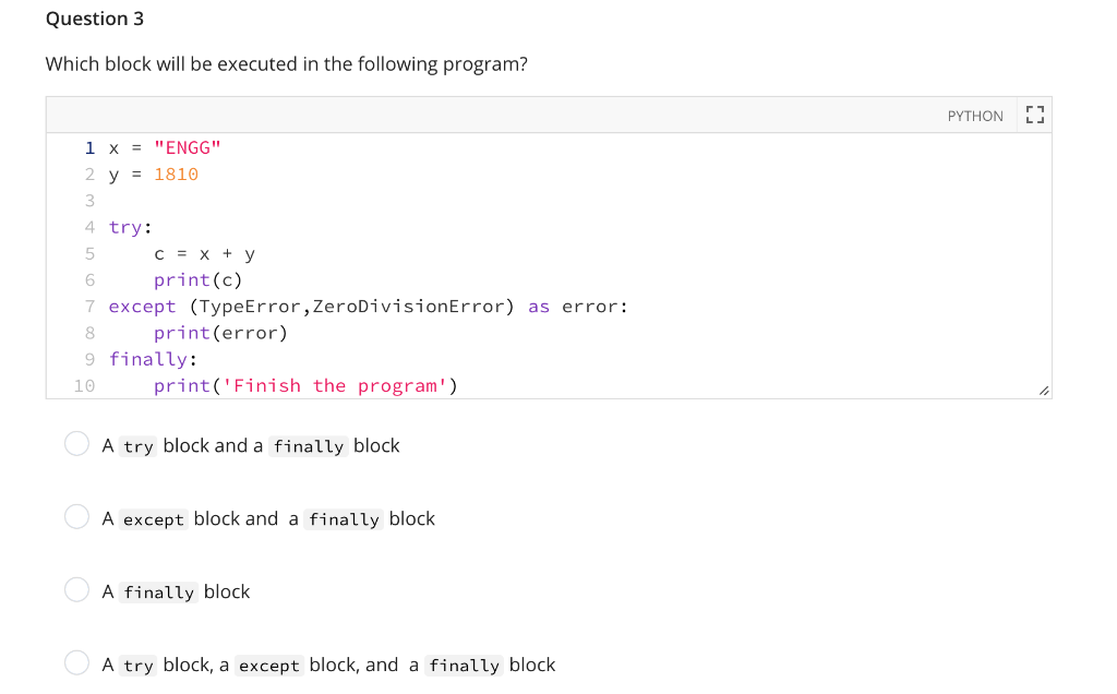 Solved Question 3 Which Block Will Be Executed In The Chegg Com